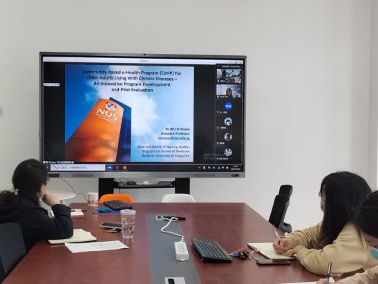 本次活动由鲸鱼直播足球 洪静芳院长、李树雯副院长主持,邀请新加坡国立大学Vivien Wu博士作题名为“Community-based e-Health Program For Older Adults Living With Chronic Diseases - An Innovative Program Development and Pilot Evaluation”的报告。