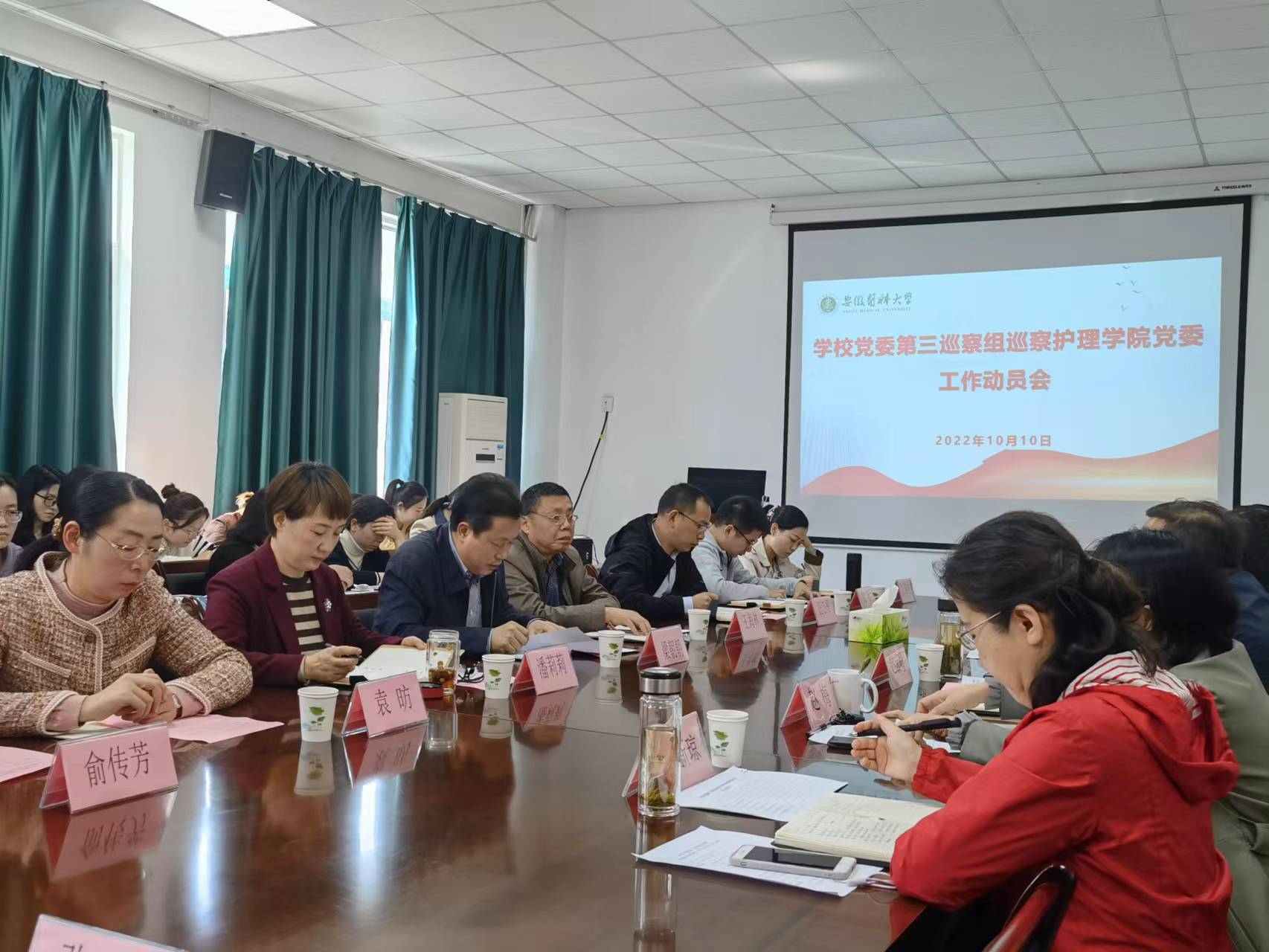 根据学校党委关于巡察工作的统一部署,10月10日,学校党委第三巡察组巡察鲸鱼直播足球 党委工作动员会召开。会前,校党委常委、副校长梁朝朝主持召开巡察组与鲸鱼直播足球 党委主要负责人的见面会,校党委巡察工作领导小组成员、党委巡察办主任王海林传达校党委书记顾家山关于巡察工作讲话精神,校党委第三巡察组组长潘莉莉通报巡察任务和工作安排。会上,梁朝朝作动员讲话,潘莉莉就巡察工作进行了部署安排,鲸鱼直播足球 党委主要负责人赵云峰主持会议并作表态发言。