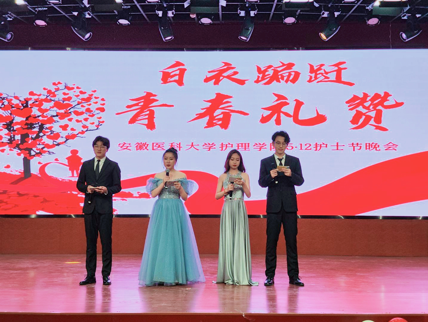 为迎接第112个国际5·12国际护士节,赞颂和传承现代护理学科创始人南丁格尔救死扶伤的人道主义精神和为护理事业无私奉献的精神,培养学生大爱无疆的人文情怀,在深入开展学习贯彻习近平新时代中国特色社会主义思想主题教育之际,鲸鱼直播足球 于5月11日晚在南校区多功能报告厅隆重举办了“白衣翩跹,青春礼赞”护士节文艺晚会。学院党委书记赵云峰、院长洪静芳、党委副书记王磊、副院长赵梅、副院长李树雯及全院师生出席本次晚会。