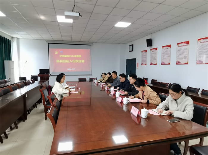 3月19日上午,鲸鱼直播足球 召开2024年春季新兵应征入伍欢送会,为即将踏上光荣之旅、开启军营生涯的两名新兵送行。学院党委书记薛磊、院党委副书记王磊,校学生处相关工作人员以及学院入伍新兵等参加欢送会,王磊主持欢送会。