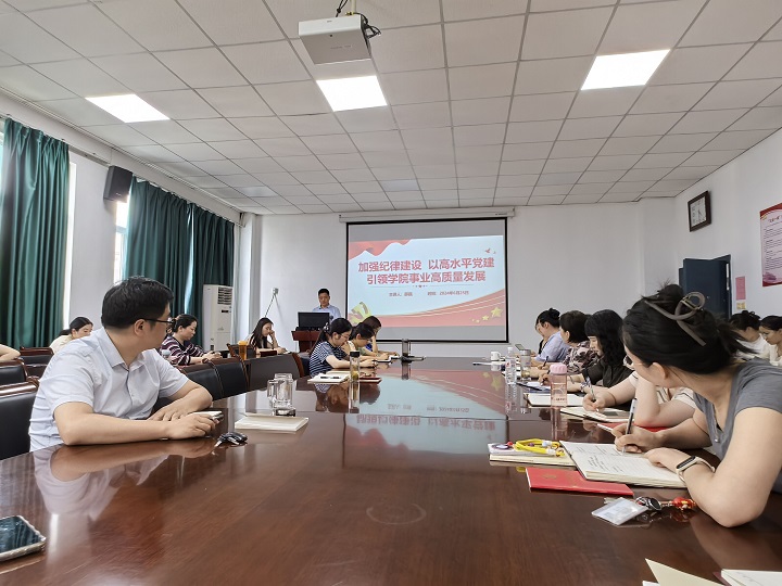 薛磊希望学院全体党员干部要明晰党纪学习教育和学院工作中存在的问题不足以及改进举措,切实做到学纪、知纪、明纪、守纪;要以心无旁骛的定力,时刻审视自己、检查自己、反省自己,用党的纪律校正思想和行动,始终做到忠诚干净担当,落实立德树人根本任务,推动学院各项工作扎实开展,共同为开创学院事业高质量发展新局面而努力奋斗。