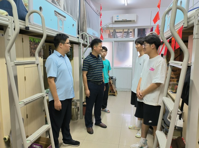 9月1日学生陆续返校后,学院领导带领学院学工队伍第一时间走访学生宿舍,看望慰问返校学子,详细了解同学们的暑期情况、学习成果、实践动态,针对同学们反映的实际困难提出切实可行的解决方案,并勉励大家在新学期以崭新的面貌、满腔的热情、拼搏的心态迎接新挑战,笑对新征程。