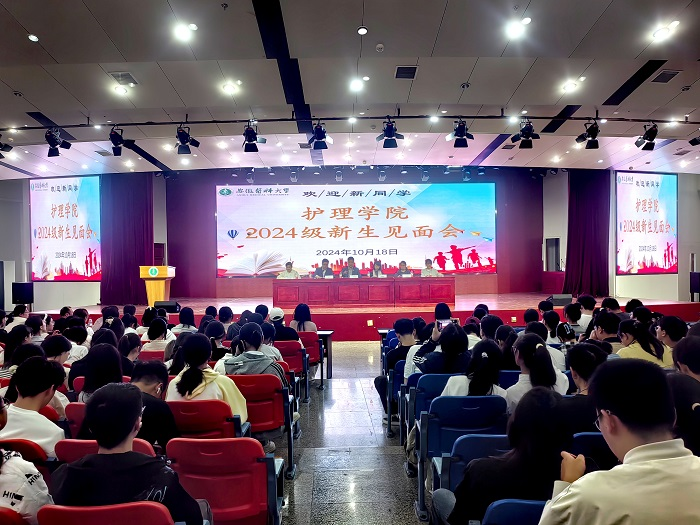 薛磊向全体2024级新生表示欢迎和祝福,并回顾了我校护理教育近百年的发展历程,希望大家继承和发扬“好学力行,造就良医”的校训精神和“严谨、勤奋、博爱、创新“的院训精神,直面专业发展的机遇和挑战,不负韶华,努力成为新时代护理、助产、养老服务管理领域高素质卓越人才。他寄语全体新生,要厚植家国情怀,注重品德修养,锤炼意志品质,精于专业技能,勇于探索未知,敢于挑战自我;要在积极参与社会实践中更好了解社会、了解行业、了解自己,不断调整和完善个人的职业规划,努力成长为德智体美劳全面发展的社会主义建设者和接班人,为国家的医疗卫生事业和人类健康事业贡献青春力量。