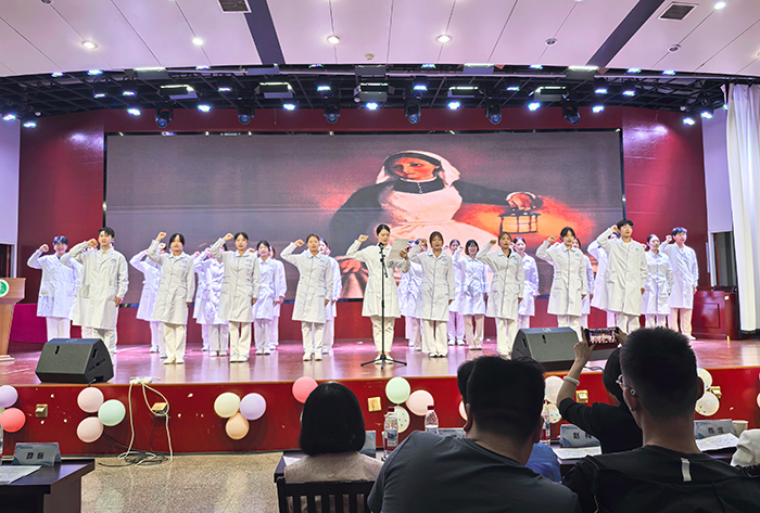 5月10日,鲸鱼直播足球 在翡翠路校区多功能厅举办主题为“白衣执甲、护爱佑康”的护士节文艺晚会,庆祝第114个国际护士节的到来,弘扬南丁格尔精神,增强职业价值认同。副校长洪静芳出席晚会并致辞。