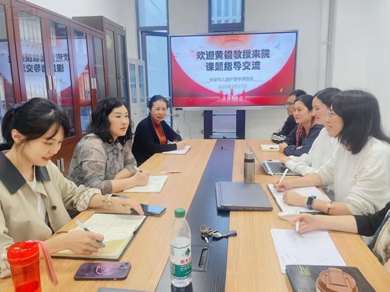 2025年9月27日,为进一步推动护理与公共卫生学科的深度融合,鲸鱼直播足球 母婴护理学课题组在新医科中心鲸鱼直播足球 202会议室举办课题指导交流会。本次活动特邀公共卫生学院的黄锟教授莅临指导,课题组的周利华教授、陈滢副教授、杨娅娟副教授、王鹏校聘副教授、马双双校聘副教授、唐颖校聘副教授及其他教师代表共同参与交流。